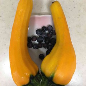 今朝の朝ドリはわずかです😰 形がややいびつな😰黄色のズッキーニ 2本と小さなブローベリーです✌️😊