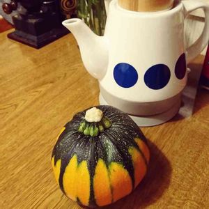 丸ズッキーニです。皮を剥いたわけでは、ありません。😄こういう模様なんですよ。おしゃれでしょう🎵😀 (2年前に収穫した時のpicです。)
