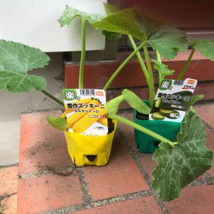 ズッキーニ料理が大好きな私 でもいつも苗を買いそびれていました 今年は二色のズッキーニ! 上手く育ちますように🙏 でも最近キタキツネ🦊出るのです 木酢酢撒かないとならないです☺️