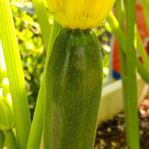小さな畑に植えたズッキーニさん 自家受粉した後にみるみる大きくなり5日ぐらいで食べ頃サイズに 観葉植物と比べて野菜の成長速度に驚き!