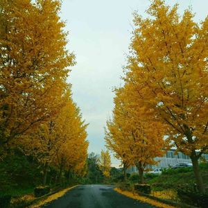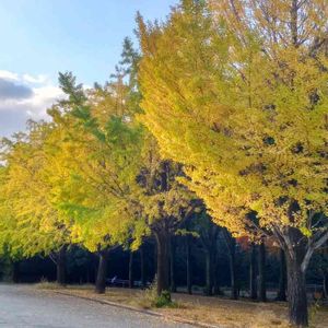 *イチョウ(銀杏) ☔🌤️雨が降ったり晴れたり…空模様が悪くても色付いた銀杏は綺麗です😊✨ もう少しで、この並木通りも黄金の絨毯になりそう…😊😊 この時期だけの楽しみ、思いっきり満喫します🍁🍂😊 イチョウ時間🛵😊♪