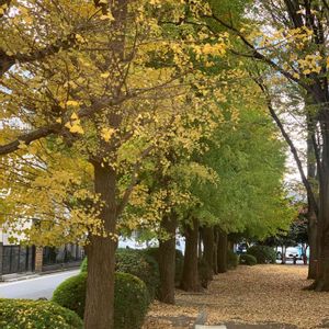 家の前の公園のイチョウ並木です。 今年は紅葉してるもの、落葉してるもの、まだ青々してるものとバラつきが。気候のせいですかね?1本だけ雌株があって大きな銀杏が採れるんですよ。(*´ω`*)
