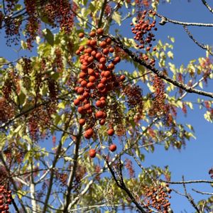 秩父ミューズパークのいちょう並木の片隅に、見慣れないたくさんのイイギリの赤い実が垂れ下がっていた。😊👍🎶📸