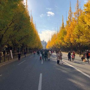 神宮外苑いちょう並木 今朝の様子です いちょう祭りもしていて 賑わってまーす😀