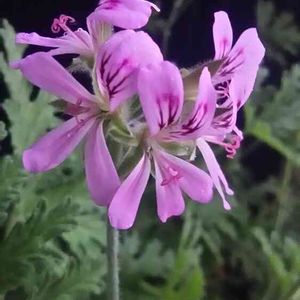 カーポートのせいで陽当たりの悪い玄関先にてようやく咲き始めたローズゼラニウム?ハーブゼラニウム?蚊除け効果がほんとにあるのかは謎です😏葉は触るとレモンの香りですね 室内越冬で2~3年くらいですがすでに木質化してるかも…
