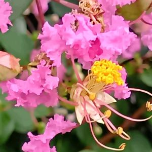 こんにちは🎶🦜🩷⚡️ サルスベリが咲き出しました🩷 不思議な花のつくりが知りたくて調べてみました(・o・)フンフン AI による概要 サルスベリの花は、特徴的なフリル状の花弁と、長さの異なる2種類の雄しべを持つ両性花です。花弁は6枚で、縮れたような独特の形状をしています。中央には短い雄しべが多数集まり、その周りをより長い6本の雄しべが囲んでいます。また、1本の雌しべが中央にあります。 急な雷雨も上がったので サルスベリの花のつくりをゆっくり見てきますね(^v^)♪♪〜 良い午後をお過ごしくださいね(*^^*)🩷