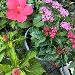 朝のハイビスカス ペンタスまだまだ 花盛り🥰