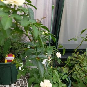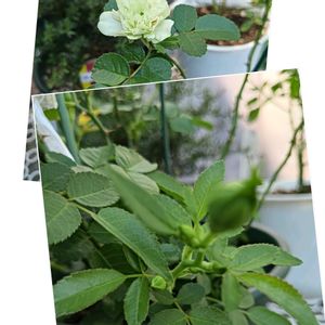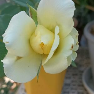 挿し木苗を鉢植えに してました💚💛 午後3時初めてのお花 黄色🟡の薔薇咲きました