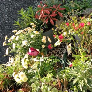 部屋からの撮影です ミニ薔薇、赤が咲き始めました😘♥️マーガレット グリーンアイスなどなど