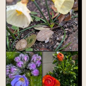 皆様お早う御座います☁️☀️ 昨日はあのおぞましい地下鉄サリン事件から30年でしたね😰 いまだに後遺症で苦しんでおられる方々の人生を考えると胸が張り裂けそうでした🤢🤮😡🤬💢 当時のことを何も知らない多くの若者が、まだ入信しているとか… 語りつなぐことの大切さを痛感しました🤔🫤 あまり代わり映えのないpicでごめんなさいね🙇💦💦 左上 ノースポール左下 左下 ミオソティス・ミオマル ク 右上 ゴールデンベル(水仙) 右下 スノーフレーク 真中 スカビオサ・ブルーバル ーン 今朝は寒かったですが昼には半袖でも良いくらいの暖かさになるそうです😅 着るものに悩みますね🙄😮💨 調節出来る服装でお出かけくださいませ🫶