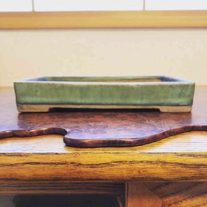 常滑の作家さんの盆栽鉢です。 この薄さがお気に入りです。 もみじや楓なんかに合わせたいな。