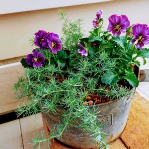 カネノナルキにこぼれ種の アサガオ♡)笑顔になれた朝( ◜‿◝ )♡ 無名のビオラちゃん元気に〜! お手頃価格のビオラが 一番成長早く元気だと誰かが 言っていたけどそのとおりかも…!