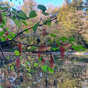 池のほとりに 綺麗なイイギリの実 葉っぱは緑でインパクトありでした!