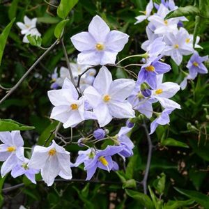 おはようございます🤍💜🌿 初めてのお花です AI検索🔎したらツルハナナスとでました🤲´-•ᴗ•ꕤ* 今日も楽しくハッピーに ᑎ ᑎ ( ˶ᐢᗜᐢ˶)つ ♡