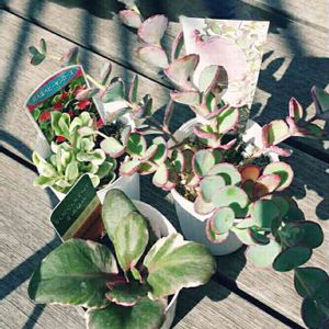 激安花苗店にて ・カランコエさくらいろ ・越中ミセバヤ ・斑入りベビーサンローズ すべて@89円🙌 見切り品の様な値段ですが定価です⤴ 可愛い花苗もありましたが、この暑さの中で植え付ける気力が無く、諦めました💦