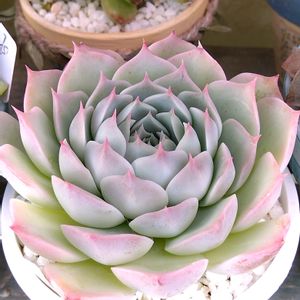 春も間近になってようやく 紅葉見せてくれた多肉達⑫ クリームローズ 優しい色合い出してくれてます ふわふわしたメレンゲの焼き菓子のよう 将来デカベリアに育てたい候補です