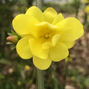 オウバイ(黄梅) 中国を原産地とするモクセイ科ソケイ属の落葉低木。中国名を「迎春花」といい、その名のとおり早春にウメに似た黄色い花を咲かせるため、オウバイと名付けられた。 英名はウィンタージャスミン💛