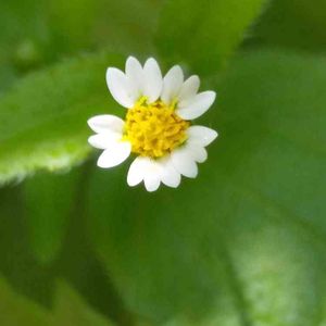 紫蘇のプランターに ヒョコッリ 顔を出したのは お名前が残念な「ハキダメギク」さん😃 でも、先が3つに割れてる花弁はとってもキュート🥰