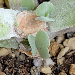 おおっ👀‼️ 朝のタニパトで デザートローズさんの 赤ちゃん発見😍💞💓 上の部分だめにしちゃって カットして、もうだめかなーと思ってたんだけど嬉しいです🎵😍🎵 なんだか🦋みたいですね🎵 すっごく小さいけど 頑張って夏越しして欲しいです🌱😌🍀 それにしても この白いダニのようなカビのようなのって何なんでしょ😖 知ってる方教えてくださいまし🙏 とりあえずシュッシュしておこうかな😅