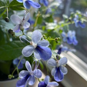 クレロデンドルム ブルーウィング🦋 GSでお見かけするたびに可愛いなぁとずっと片想いしていたクレロデンドルム💕 約3週間ほど前、ようやく我が家に✨ 鉢植えにして開花するのを楽しみにしていましたが中々開花せず…何か間違えちゃったかなとドキドキしていましたが、昨日無事開花しました✨ 皆さまが仰る通り、蝶々が飛んでいるみたいで本当に可愛いですね💖 たくさんの蝶々が舞う姿を見られるように大切に育てていきたいと思います🥰