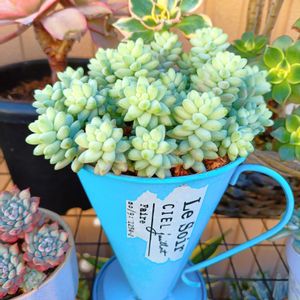 もうずっと酷暑🥵なので ヤケになって毎日水をあげてたら 新玉つづりが急に成長しだして先端が徒長です💦 密に葉を付けて欲しくてゆっくり育てようと思ってたのに またもや計画失敗⤵ 去年わりと長く垂らせられたので 冬管理がしやすいようにと1つにまとめていましたが 他の方法を考え直した方がよさ気です😥