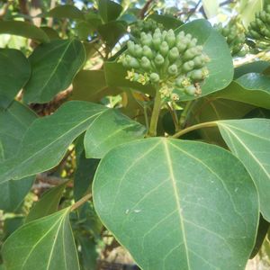 カクレミノの花が咲いたと、掲載がありましたので、カクレミノの木のある公園を見に行きました。 まだ、蕾がほとんどですが、手前に花も見られます。 秋には赤紫の実になります。 カクレミノ ウコギ科の常緑樹 大きな葉が目につきます。