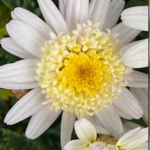 PWマーガレット バニラボネット 園芸店巡りで衝動的にお迎えしてしまいました😅キレイ〜😍😍 カタログでは正直ピンと来てなかったのですが、実物を見たらすごく素敵だったのでつい…お花の置き場所がいよいよ難しくなってきました😅😅
