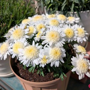 今日のお花🌸マーガレット PWさんのマーガレット バニラボネット👒𓂂𓏸 お迎えしてからひと月近く経ちました🗓️ 大きくなって欲しいな😍