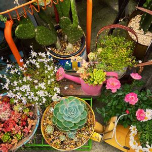 ここも花ざかりだ🌸 シンバラリアの花が理想通り 溢れてきてる❤ ラウリンゼにも花芽が。 羽衣ジャスミンが咲くのももう少しみたいだから楽しみ🎶 スカビオサも再び咲き出した。