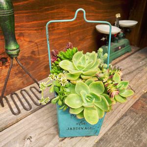 隙間に色々挿しておいたらセダムがもりっとして可愛くなった寄せ植え。