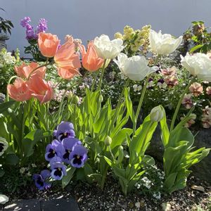 今日のお花🌷チューリップ🌷 昨年畑のお花スペースで育てたチューリップ🌷 ❤️プリティウーマン 💛ポンポネット…大輪でチューリップじゃないみたい😁 今年も3種類植えた記憶があります💦 ︎🤍マウントタコマ…50cmのプランターにダブルデッカー植えしたチューリップ🌷 つぼみの色合いがステキ😍 パンジーコライユとビオラの勢いに押されて控えめな咲き方でした 😅