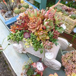 飛び石連休2日目の日曜に 2年前に作った寄植えを手直ししました! 育ち過ぎたアガボイデス系の多肉ばかり なのでエレガントさに掛けますが😅 昔植えてたルビネをエンジェルティアーズに 替えてみました😄 足りないところは必殺黄金細葉万年草埋め きっと今後も隙間埋めはこの方法で(笑)