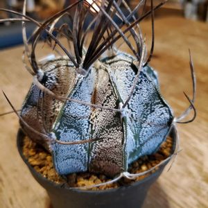 頭の星が集まって銀河みたいになってるところが好き。Astrophytumはギリシア語で星の植物という意味だそう。上から見た時の形とか斑点からかな?稜の模様や谷部分の隆起が見飽きません。 木曜から気温が急降下、最低気温3℃とか。耐寒性5℃の子達はそろそろ取り込まなきゃ。ザントロエアとかダシリリオンの実生達はどうするかな。