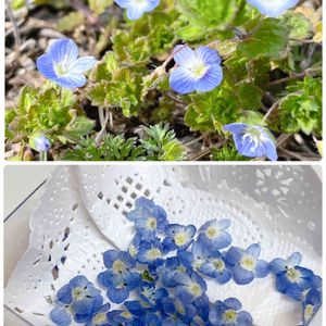 おはようございます(*˙ᵕ˙ *) 最近暇があれば ドライフラワー作りをしています🌸 色々なお花がどんな感じに仕上がるか 研究中です(▭-▭)✨ ①オオイヌフグリのお花で作った ドライが仕上がりました🤍💙 凄く爽やかな色でかわいいです ②ブーゲンビリアは凄く薄いので どんな感じに仕上がるかドキドキです💓 ③他にも沢山作ってます 1週間後に開けるのが楽しみです 毎回ドライの保存容器を開ける時の ドキドキとワクワクを1人で楽しんでます(*´艸`)フフフッ♡ シリカゲルの砂の中からのお花の発掘✨✨ お宝探しみたいに楽しい💎💠 🐺会〜(*´꒳`*)✨✨💕