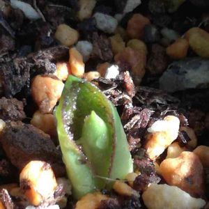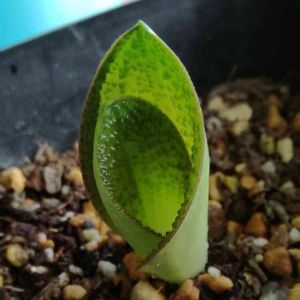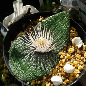 おはようございます✨ ダメだったか~😥と、思いきや 実は大丈夫だったシリーズ。その2✨ マッソニアプスツラータ あのグロい二枚葉と、見事な花につられて昨年お連れしました✨ 春先に枯れたあとどーなるんやろ~😂💦と、かなり不安でしたが、先月土の中を探ったところ硬い芽の兆しを発見✨😆 生きててくれた~( ;∀;) こうしてみると、すでにグロい葉っぱの兆しが見てとれます。 今のうちだけ、かぐや姫みたいですな💕