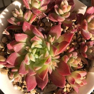 ベンケイソウ科 グラプトペタルム属 ●マクドガリー (二種) 普通のマクドガリー(右)と レッドマクドガリー(左) 昨年末 セール品を購入🤗 こんな元気が良いセール品なら大歓迎 \\\\٩( 'ω' )و //// 下写真は 我が家の多肉VIP席✌️ 最近購入した子たちを中心に保護?しています (あはは 買ってきたままの段ボール箱に入った子も、、😅 今度セリアで買ってきたお洒落なトレイに入れてあげよ✌️) 太陽燦々の 出窓です 夜はブラインドをおろし さらに 発砲スチロール板で 冷気遮断してます( ◠‿◠ )