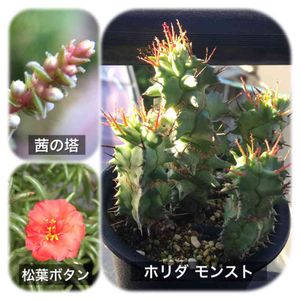 おはようございます😃 本日も出勤です〜❗️暑い💦🥵 ユーフォルビア属 ⭐️ホリダ"モンスト"(22) Euphorbia horrida f.monstrosa❗️ 久しぶりの紹介です〜❗️😅 赤い刺が素敵❗️🥰 大分大きくなりました〜❗️🤗 クラッスラ属 ⭐️茜の塔(あかねのとう)(292) Crassule tabularis❗️ 超小さな花が咲いてる、マイクロレンズで撮影❗️🥰 スベリヒュ属 ⭐️松葉ボタン(277) Portulaca grandiflora❗️ 暑さに負けずに咲き続けてます❗️🥰