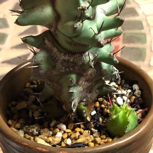 ユーフォルビア、ホリダモンストもうひとつ。こっちは、根元から仔吹きしたけど、途中から葉仔吹きせずに、太いままごつごつとモンスト化するタイプみたい。