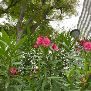 葉っぱはキヨウチクトウのようですが、花はバラのようです。