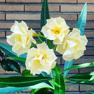 クリームイエロー八重のキョウチクトウを見つけました🌼 1度通り過ぎたのですが、やっぱり気になり帰り道に寄って撮りました📸✨ 半月前のことです。 一昨日、近くを通ったので「もっとたくさん咲いているかも🌼」とワクワクして見に行ってみましたが、お花はほとんど終わっていました😹 八重の子は繊細なのかな?暑すぎたのかな?まだ若い樹だったのかな? とにもかくにも、あのとき写真を撮っておいてよかったです☺️💕