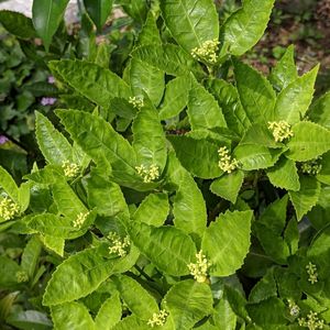 千両 地味ですが、花がたくさん付いています。 まだこれから開花?するの? この花を守り抜くが試練です。 けっこう食べられちゃうんです❗️