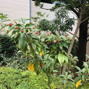 千両だと思います💦 京都 地主神社で撮影 千両って赤い実しかないと思ってました 黄色も可愛いね🎵 撮影/28mm単焦点コンデジ