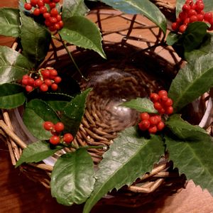 Merry X’mas🎄✨💫 知り合いの方からいただいた千両🌿 まぁるくしたら、リースみたいです🥗 素敵なクリスマスをお過ごしください❣️ わたしは年内最後のお仕事です🎵