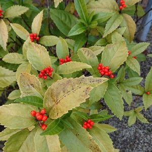 我が家の千両 赤は実の付きがいいけど 黄色は疎らで寂しい 株も赤が多いようです