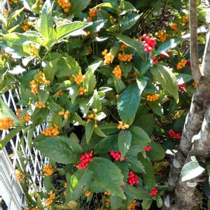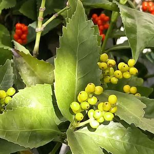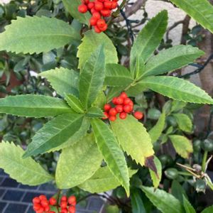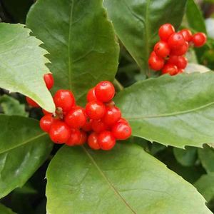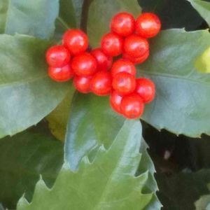 「千両」の赤い実でしょうか。📍📍 X'masホリーのような緑色と赤色の組み合わせが合う季節ですね。🎄🎅🌞👌