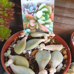 のわコレでやってるだるま秋麗とは違う鉢 1ヶ月前に植え替えてました あの時緑色だった子も少しは 薄紫色に変わったかな☺️