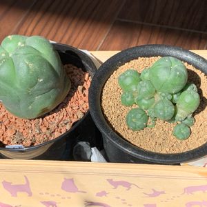 昨日浮かれて多肉狩りに行った私です(*>∇<)ノ✨ 戦利品とジンベイザメちゃんと 🏷トトの日 参加します🐟 朝からせっせと戦利品植え替え🌵 何から見せちゃおーと悩んだ結果🤔💡✨ ロフォフォラ属 『仔吹き烏羽玉』 可愛い😍💕💕 もっと買えば良かった♥ってなる子🥰 おじ様いわくサボテン🌵は、トゲがいいんだ~って語ってくれるのですが、 私はトゲがない子がいいんです🤭 おじ様のところには兜もウットリな子がいるんです🤤 でも高くて買えない~😂