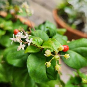 数珠珊瑚 ジュズサンゴ 寄せ植えより 小さな白いお花と 赤い実が可愛らしいです。