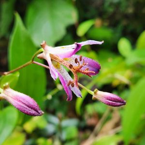 台湾杜鵑草 タイワンホトトギス この子はよく虫に食べられます。 ようやく咲いたところを 見ることができました 犯人は不明