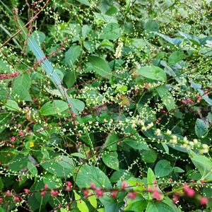 今日のお花 ミズヒキ 赤、白、黄色のミズヒキあり アップはどうしてもぼやけてしまうので全体像で、咲き乱れ。 9/27pic